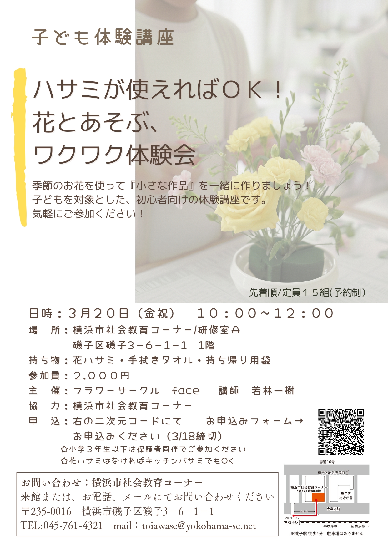 さわやかな春に向かい、花と遊ぶ体験をご一緒に!